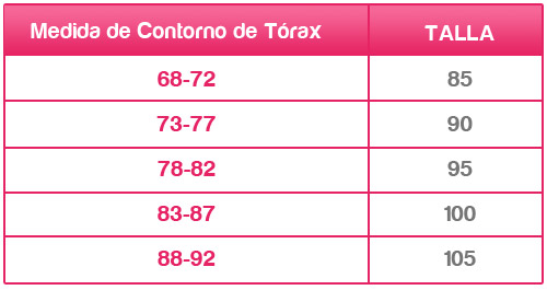 1.- Mida el contorno de su tórax (por debajo del pecho) para ver cuál es su talla: